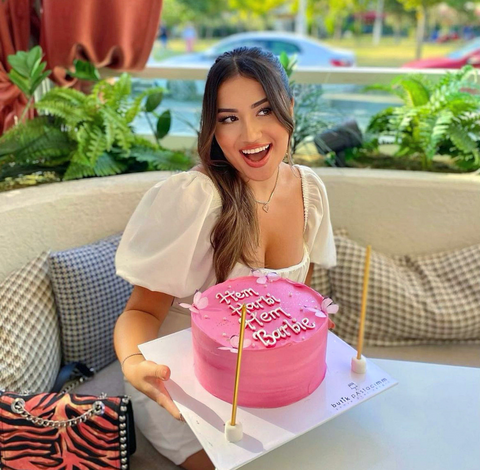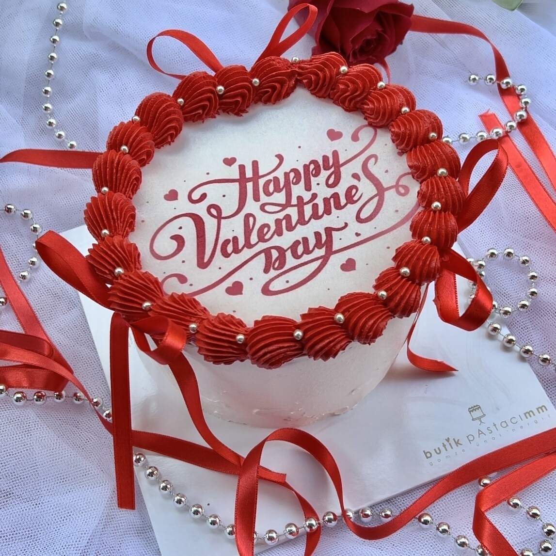 Pembe Kurdele Detaylı Mini Kalpli Yazılı Pasta P00012204