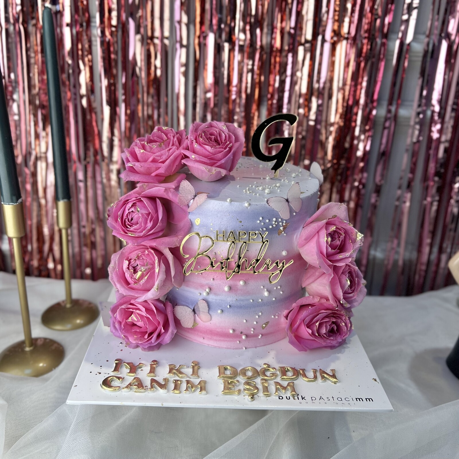 Çiçek Buketi Tasarım Pasta (Pembe Çiçek Demeti Pasta) P00012199