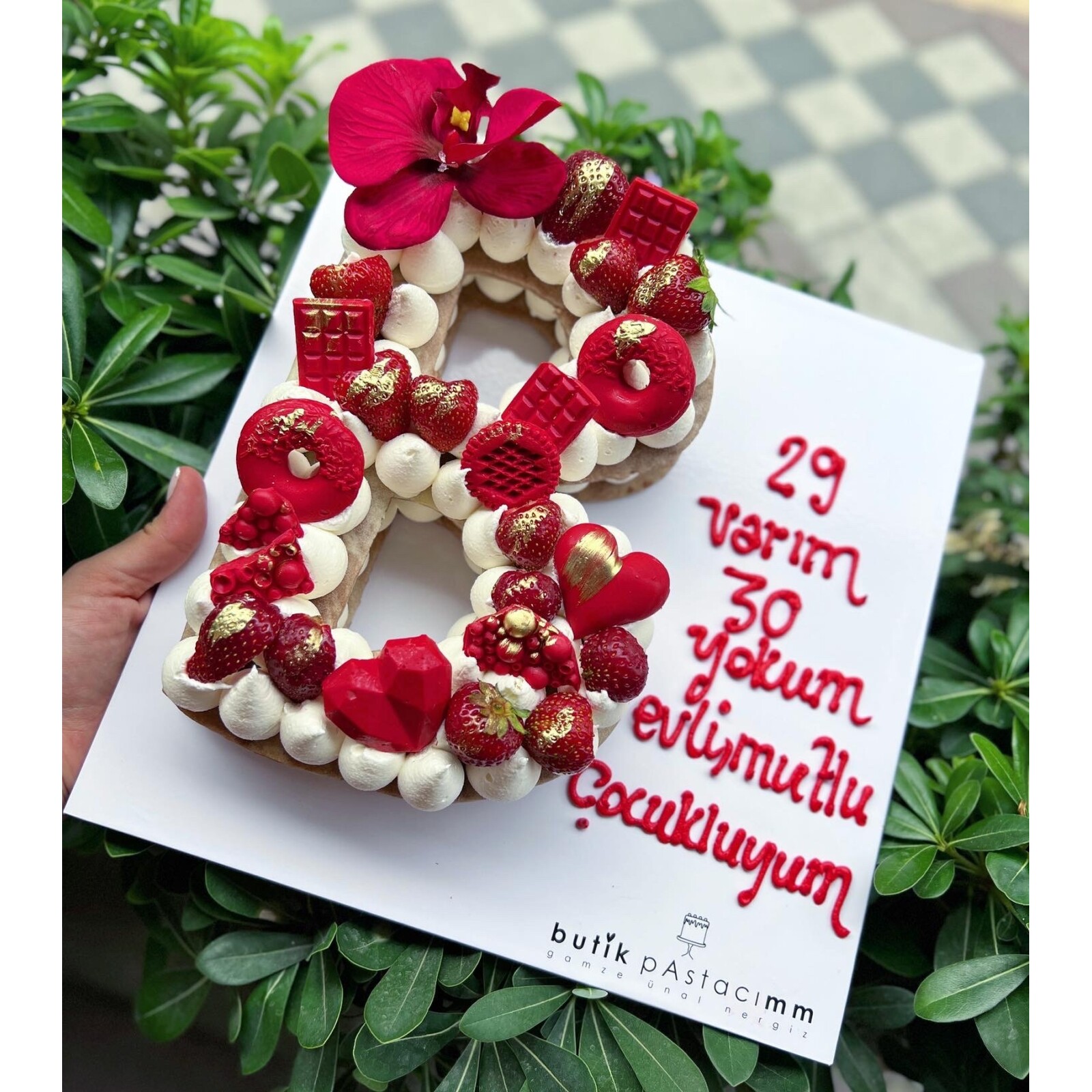 Çikolata Akıtmalı Harf Detaylı Pasta P00011435